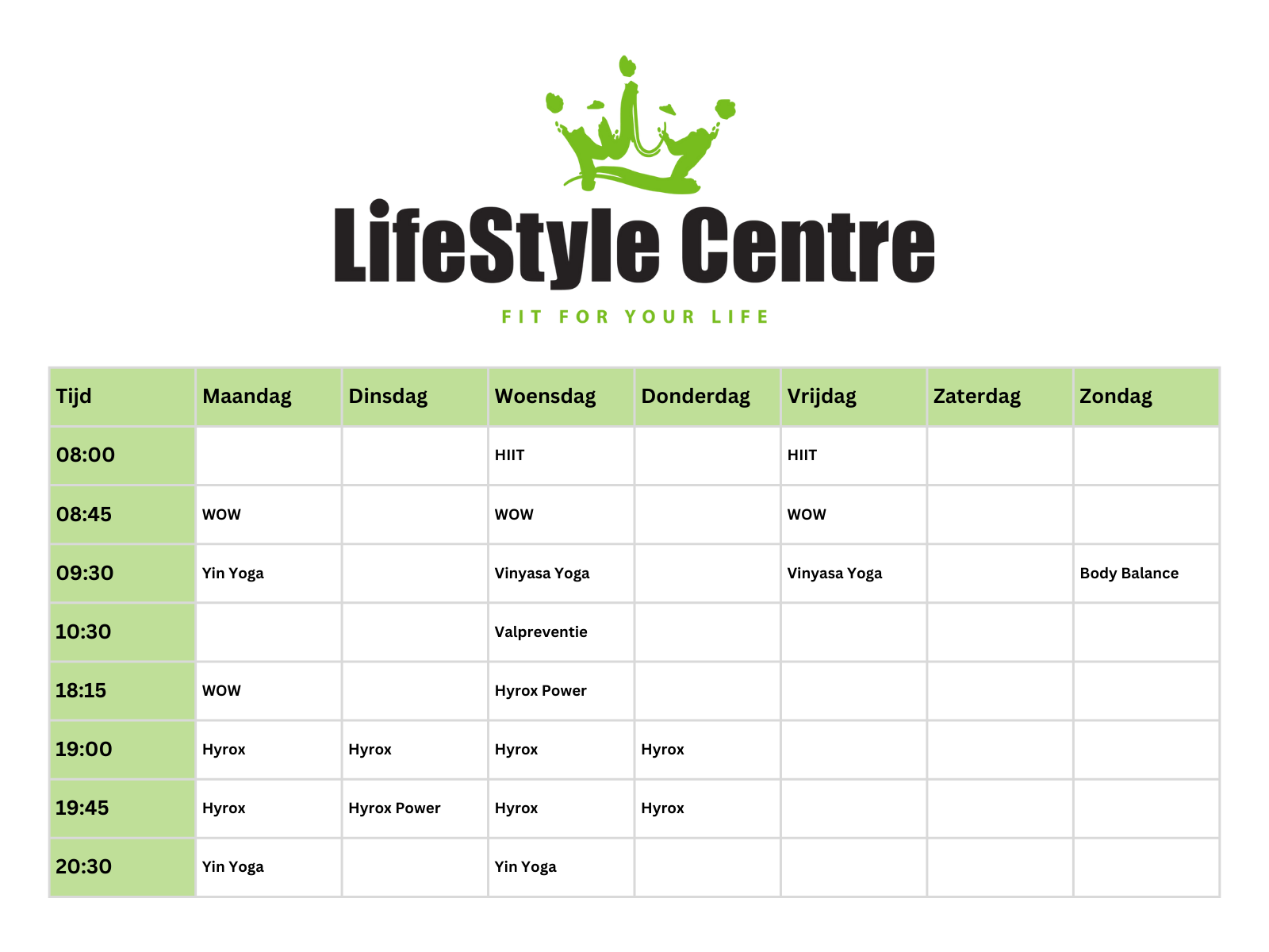 Bekijk het lesrooster van lifestyle Centre in Raalte